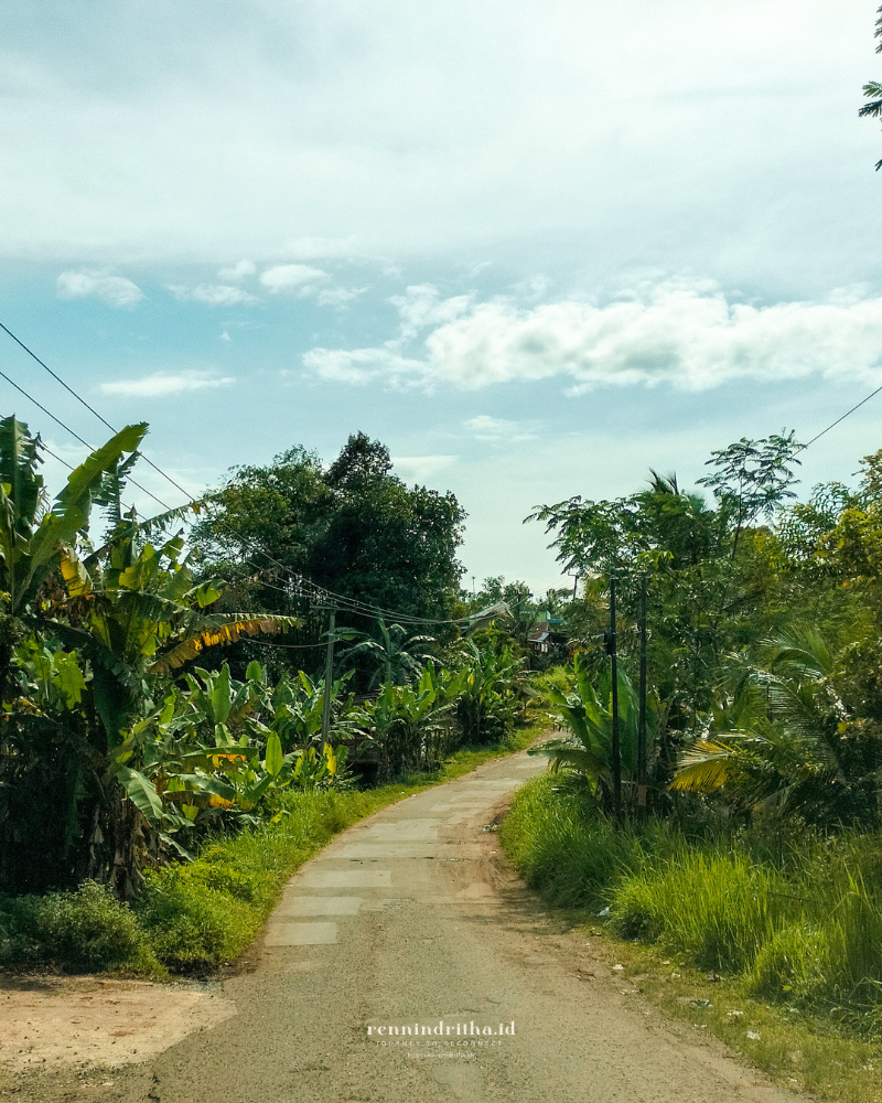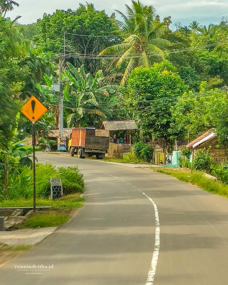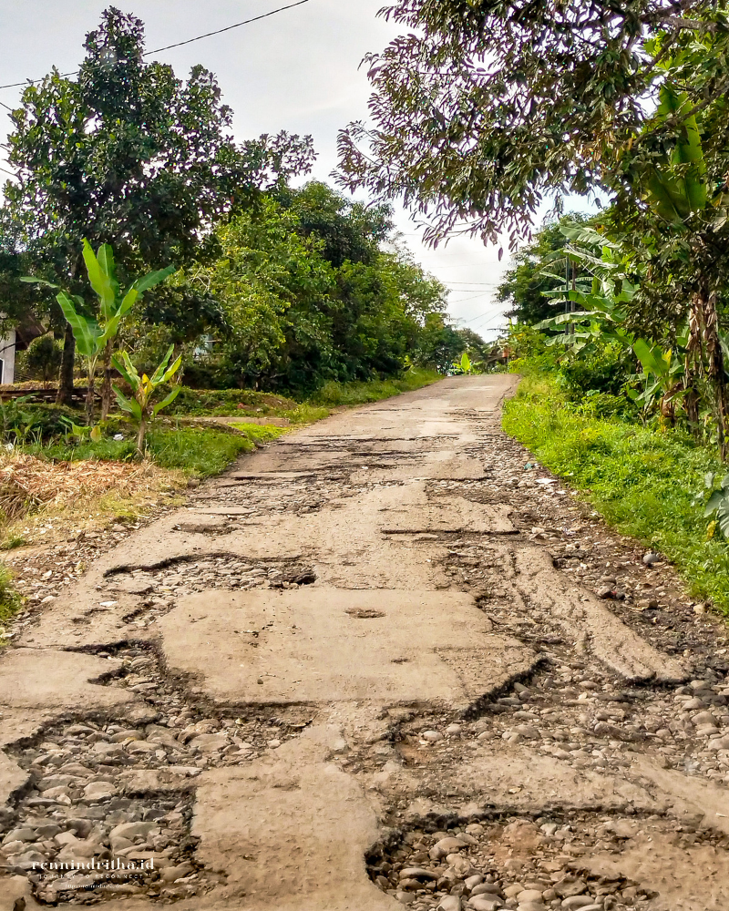 Nah, sisa seperempatnya ini yang cukup menantang hehehe. Selain jalannya semakin kecil, banyak tanjakan panjang, kerusakannya cukup parah. Perlu sopir yang cukup andal mengendalikan pergerakan mobil supaya penumpang tidak mabuk darat.