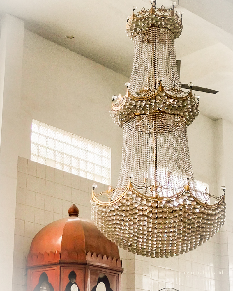 Andai saja saya berkunjung di malam hari, pasti indah saat lampunya menyala. Lampu ini kalau dilihat-lihat mirip dengan lampu gantung di masjid Cut Meutia Menteng.