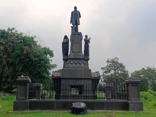 Ketiga patung di atas makam adalah replika, yang dibuat atas prakarsa gereja setempat untuk menghormati jasa Hofland pada Subang.