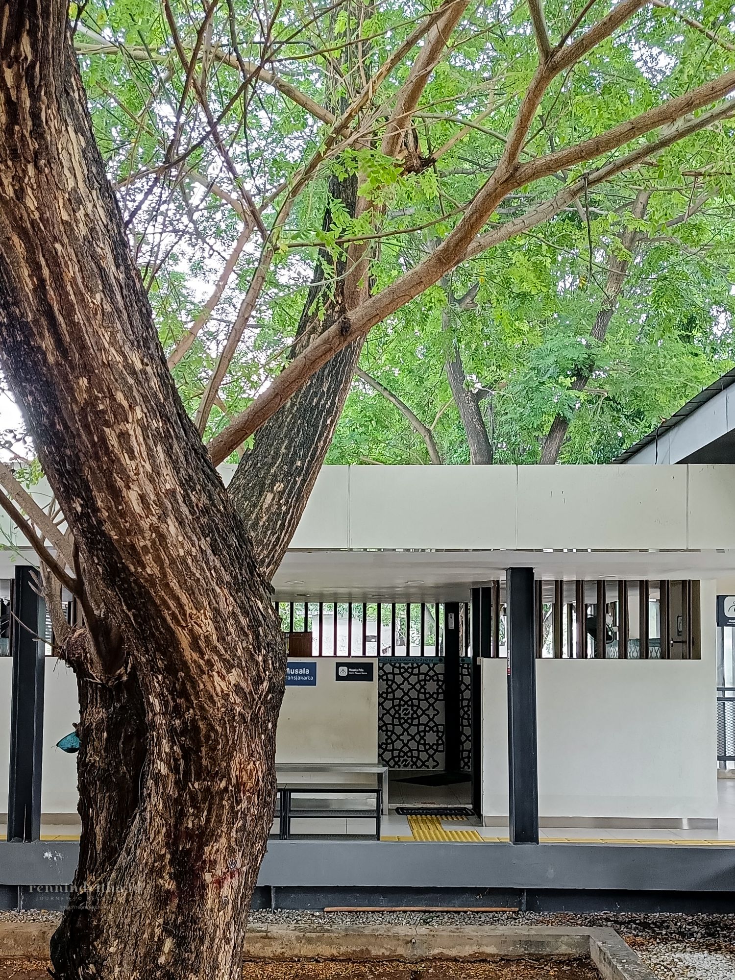 Blusukan dimulai di titik kumpul, halte Kwitang yang baru sekali ini saya masuki. Takjub lihat pohon besar berada di tengahnya. Sebuah langkah tepat untuk tidak menebang pohon dan membiarkannya menjadi elemen pendukung yang sukses membuat suasana halte jadi adeemm.