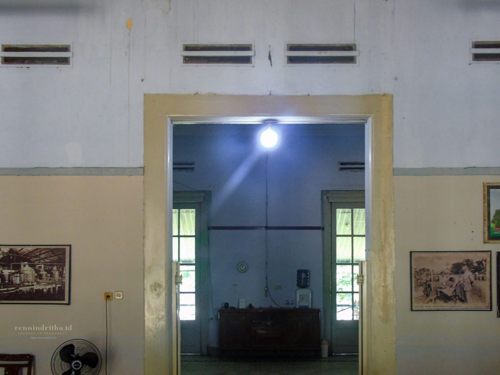 Kemudian ada teras selebar 18 meter, dengan dua pintu dan dua jendela yang simetris. Berikut dua ruangan berpintu lengkung di sisi kanan dan kiri di belakang beranda yang dulu difungsikan sebagai ruang kantor, tempat sang administatur menerima pegawai-pegawai yang datang membuat laporan kerja.