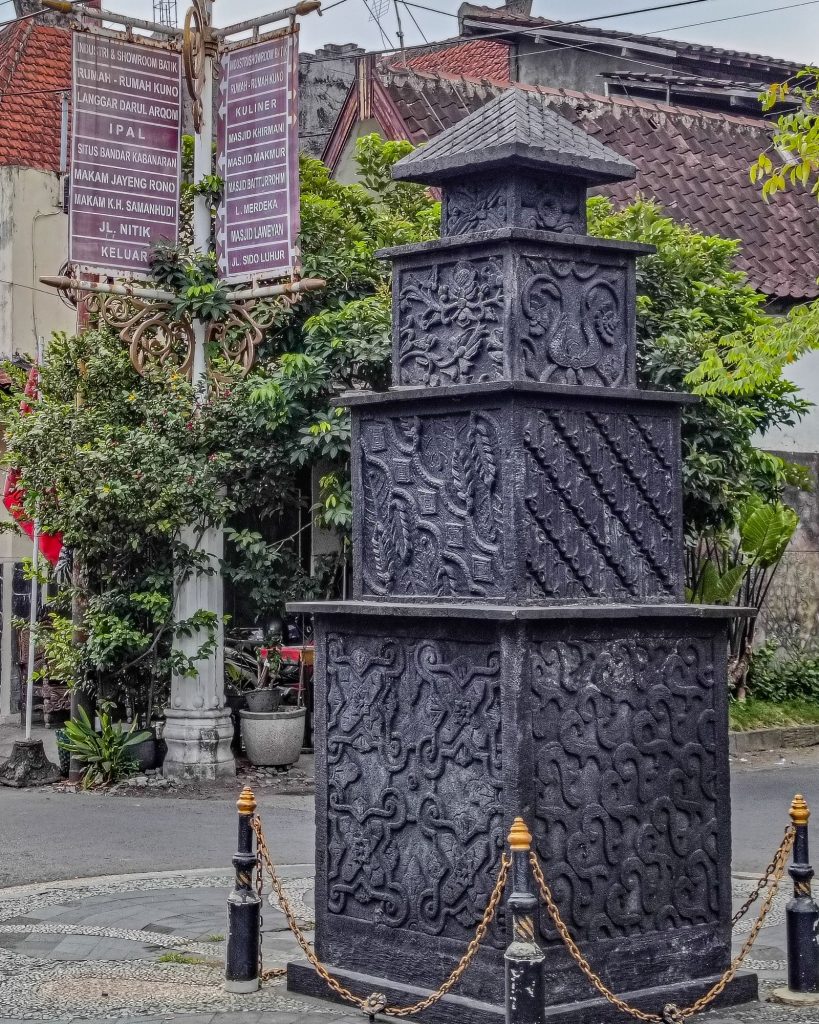 Laweyan adalah kawasan yang sangat tua. Desa ini sudah ada sebelum munculnya kerajaan Pajang, demikian juga pasarnya. Pasar Laweyan sudah ngga ada, tugu ini lah penggantinya. Konon, di sini lah dulu aktivitas perdagangan lawe (kapas yang dipintal untuk jadi bahan baku tenun) berada.