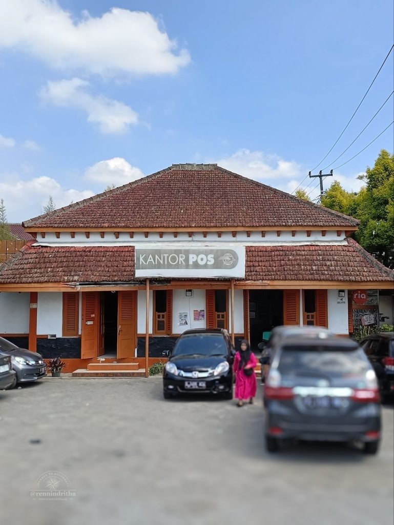 Ini adalah Kantor Pos Sindanglaya Cipanas, yang kalau dilihat bentuk bangunannya, pastilah berusia cukup tua. Saya belum berhasil menemukan catatan sejarahnya, masih bertanya-tanya apakah kantor pos ini dibangun di periode waktu yang sama saat pembangunan Istana Cipanas di 1740an. Atau dibangun bersamaan dengan pembangunan jalan raya pos alias jalur Daendels di awal 1800an. Saat ini masih berfungsi sebagai kantor pos, halamannya dimanfaatkan untuk lahan parkir pengunjung pasar, termasuk saya.