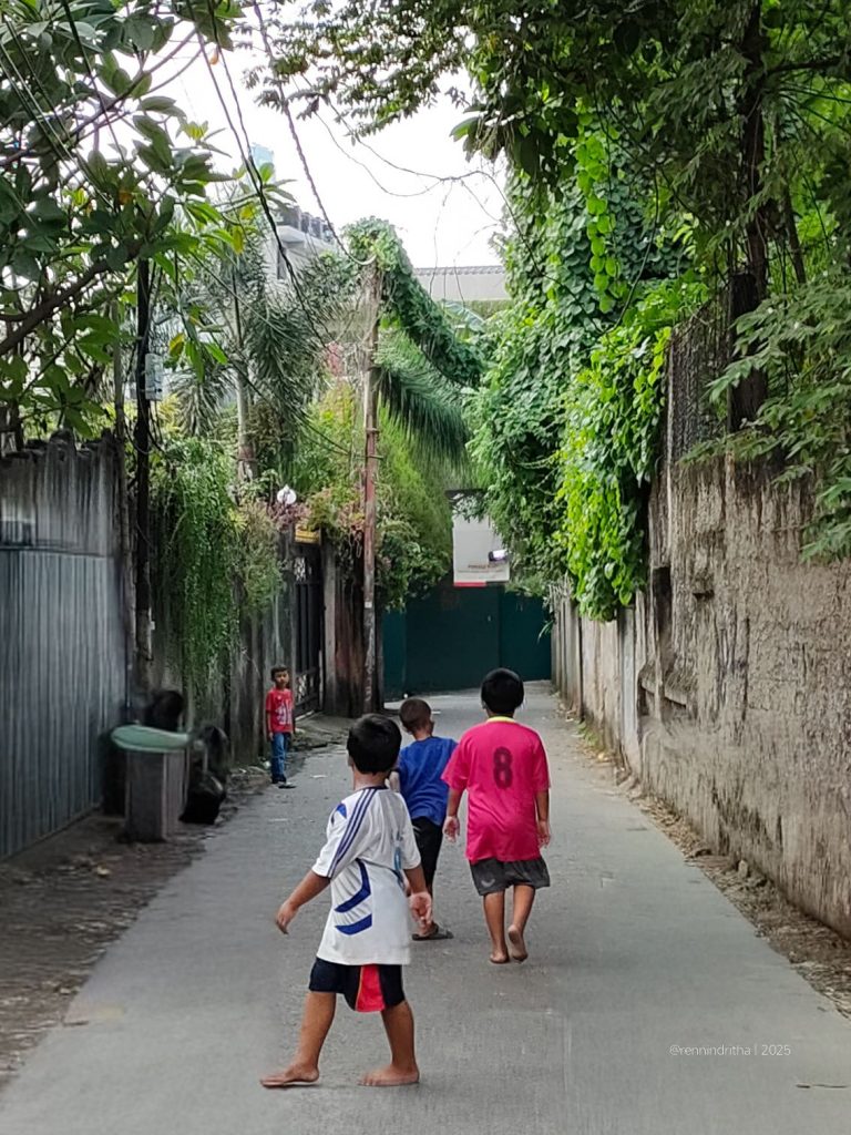 Menjelajahi gang-gang di Jakarta seperti membuka halaman lain dari buku besar bernama kota. Di sini, waktu terasa berjalan lebih pelan. Langkah-langkah kecil menyusuri gang akan membawa kita pada aroma masakan yang menyeruak dari dapur rumah, suara anak-anak bermain dan obrolan di warung kecil, tempat ibu-ibu mencari kebutuhan dapur atau rumah sekaligus sejenak bertukar kabar.